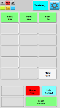 - In Verbindung mit raAPP Kasse Server wird nach klick auf den Button neuer Verkauf, der Verkauf an raAPP Kasse Server gesendet und dort weiterverarbeitet.