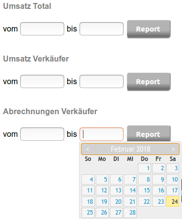 Den Zeitraum des Report durch Auswahl des Datums in den Feldern von und bis eingeben und mit Klick auf den Button Report die Auswertung starten.